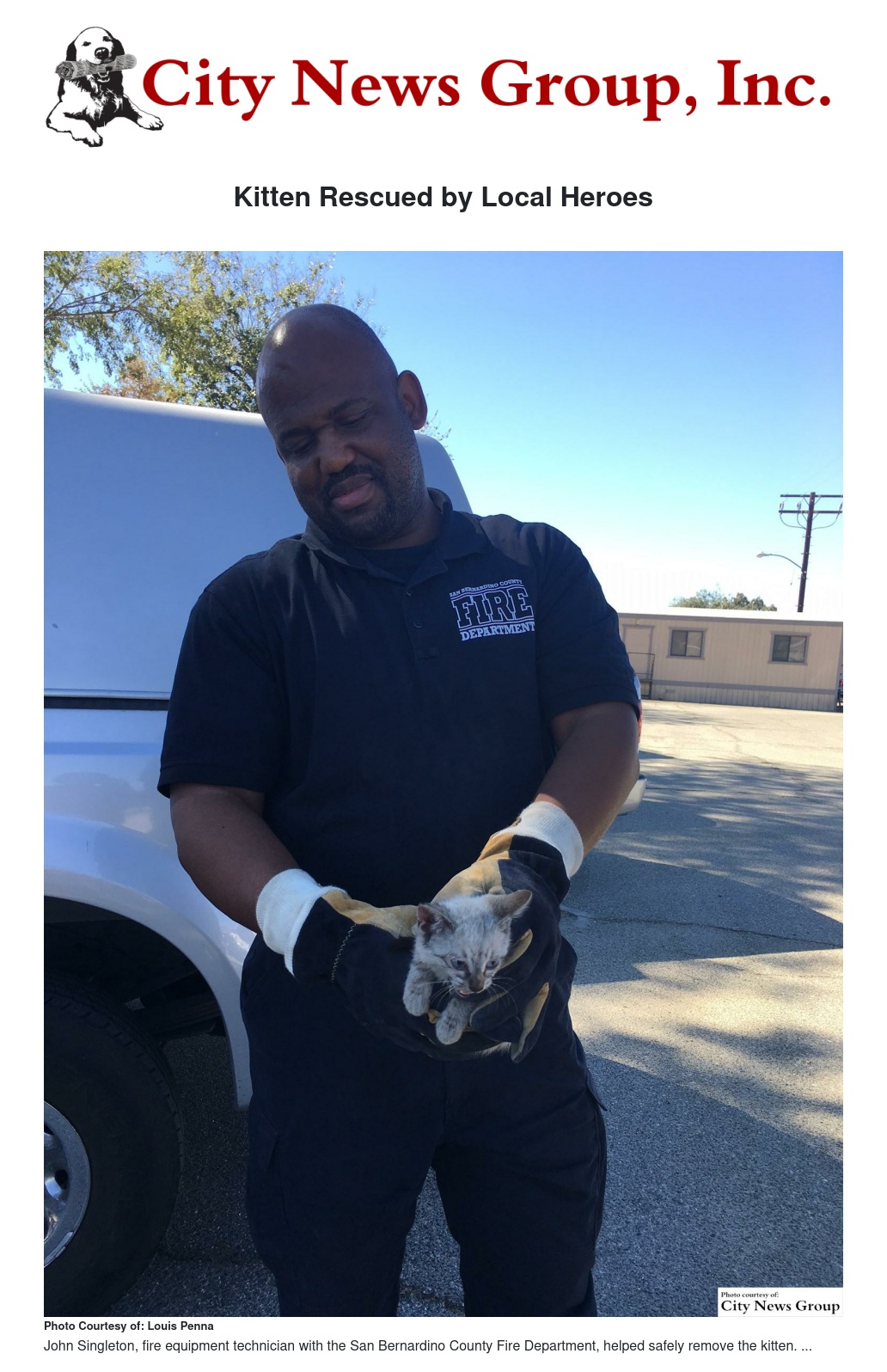 SAN BERNARDINO>> A group of heroes from San Bernardino County Fire Department helped free a trapped kitten from an engine compartment in San Bernardino.