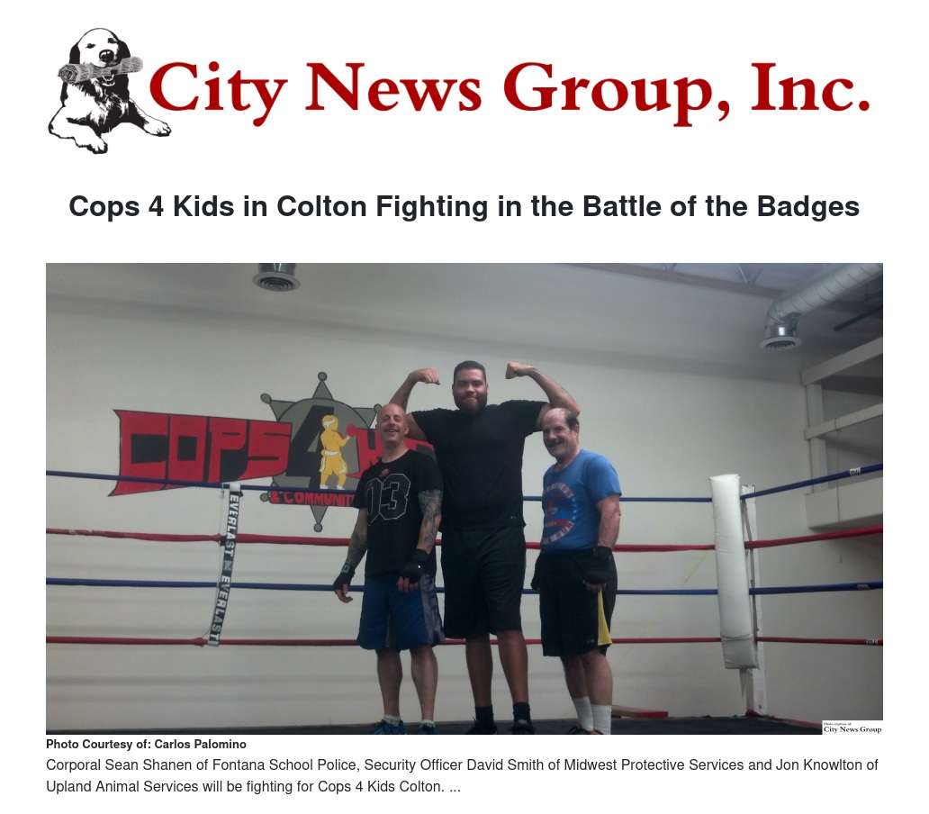 Three law enforcement officials training at the Cops 4 Kids facility at 580 Bordwell Avenue, Unit C, in Colton, will be fighting in their perspective weight classes in hopes of bringing back a winning title to the club. The officers train side by side every week with the young men and women, from ages of 8 to 17 who are members of Cops 4 Kids.