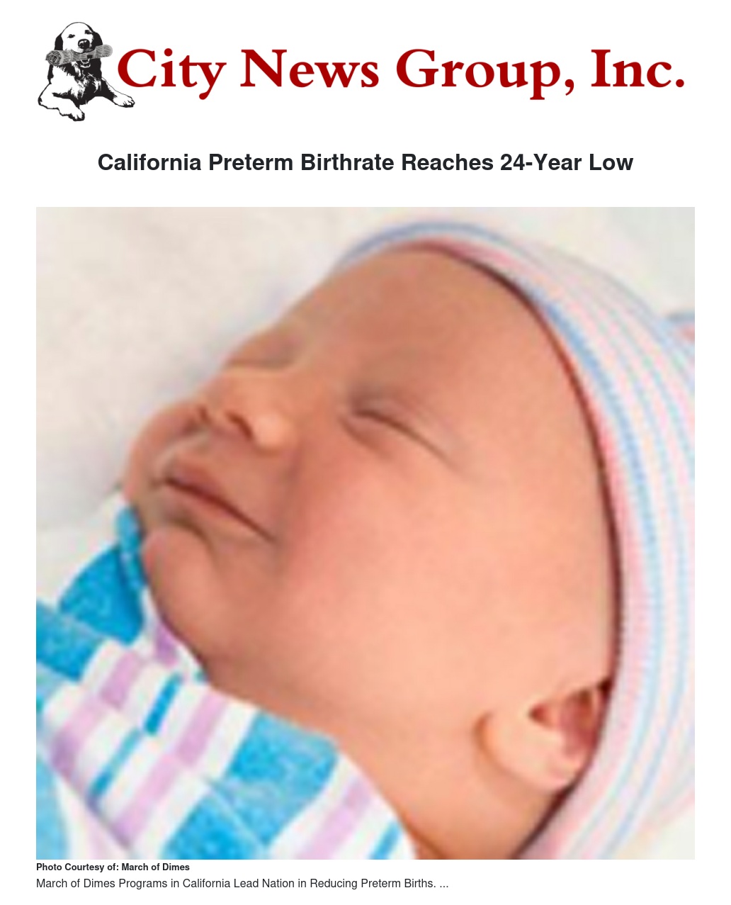 California Preterm Birthrate Reaches 24-Year Low