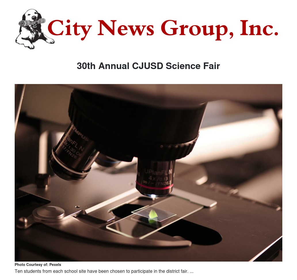 The 30th Annual Colton Joint Unified School District Science Fair takes place this week, with judging on Saturday, Feb. 10, and an awards ceremony on Monday Feb. 12.