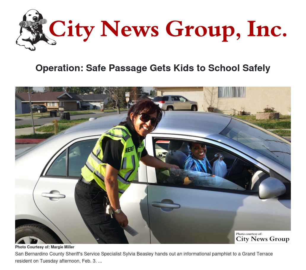 Dept. Frank Navarro of the Grand Terrace station said, "This program allows us to educate the public on vehicle codes around school zones to create a safer environment for children."