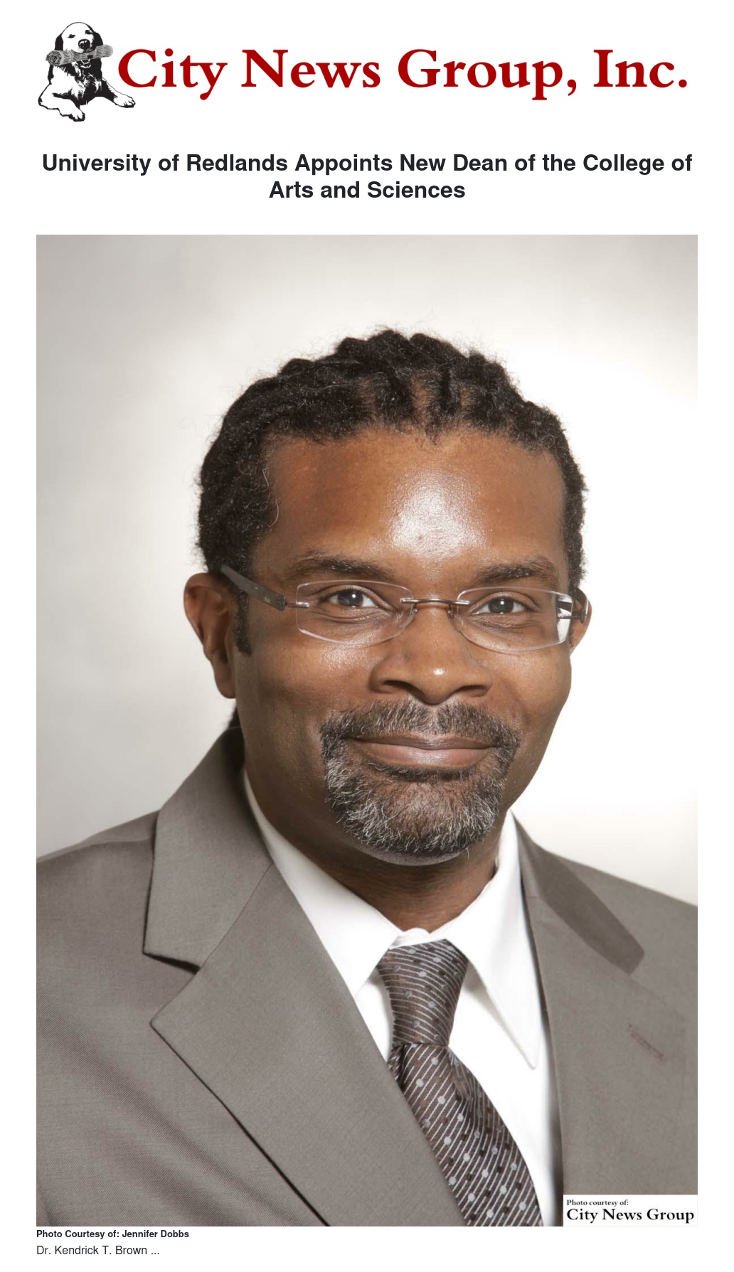 REDLANDS >> Following a national search that brought more than 100 candidates and “with anticipation of great things to come,” University of Redlands Provost Kathy Ogren today announced the appointment of Dr. Kendrick T. Brown as Dean of the College of Arts and Sciences effective July 1, 2016.