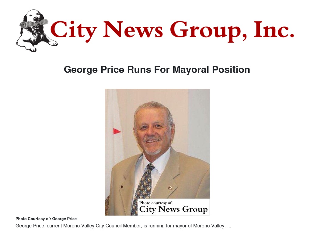 MORENO VALLEY>> George Price, current Moreno Valley City Council Member, is using his experience and education to run for the mayoral position of Moreno Valley.
