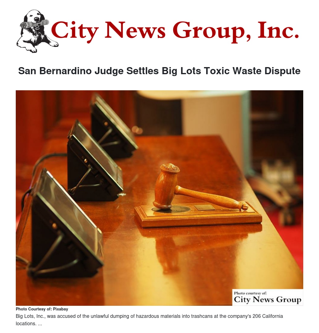 ALL>> On April 21, San Bernardino County Superior Court Judge Bryan F. Foster, settled an ongoing lawsuit against Big Lot Stores, Inc. and one of its distribution centers in Rancho Cucamonga.