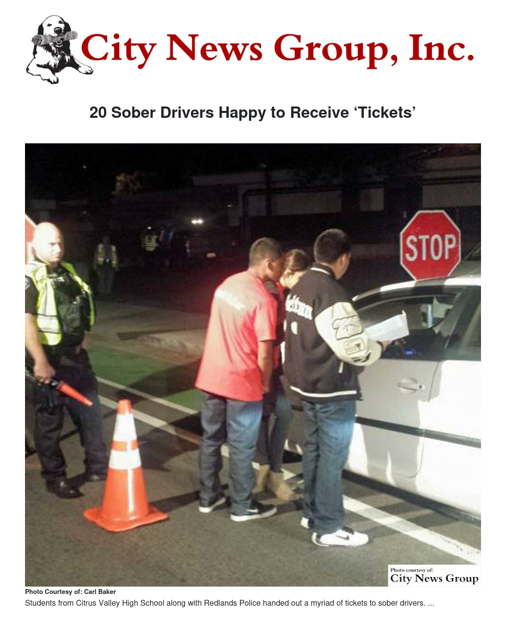 REDLANDS >> Surprised drivers received tickets last week for driving sober, but they weren’t unhappy about it.