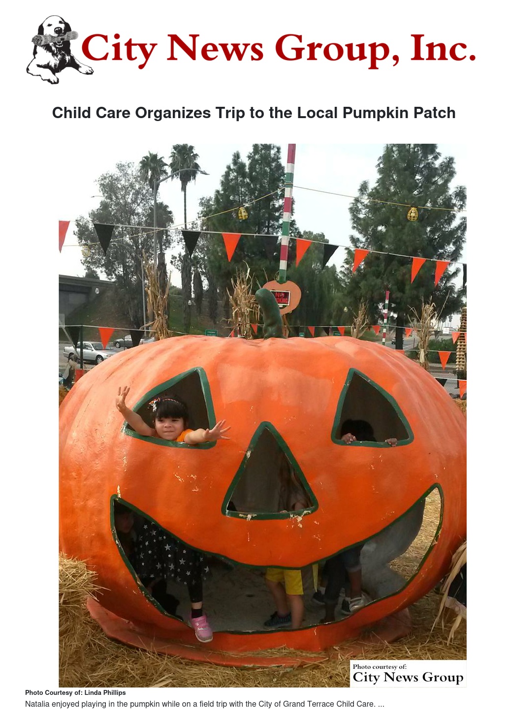 On Monday, Oct. 19, the City of Grand Terrace Child Care took its tiny tot and pre-school kids, a total of 79 youngsters, to the local pumpkin patch on Waterman and Hospitality.