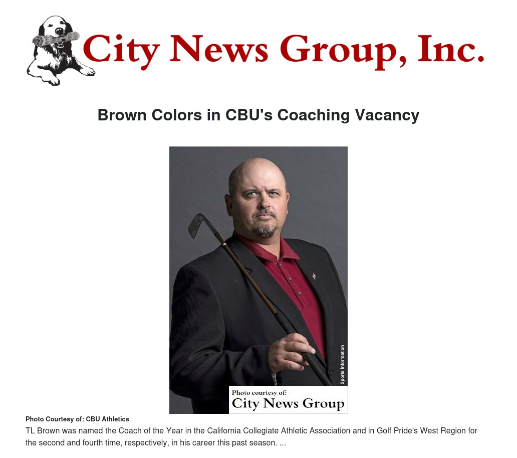 MORENO VALLEY >> One of the most recognized coaches in NCAA Division II golf over the last decade, TL Brown, was hired as California Baptist University's new men's golf coach on Thursday, June 30.