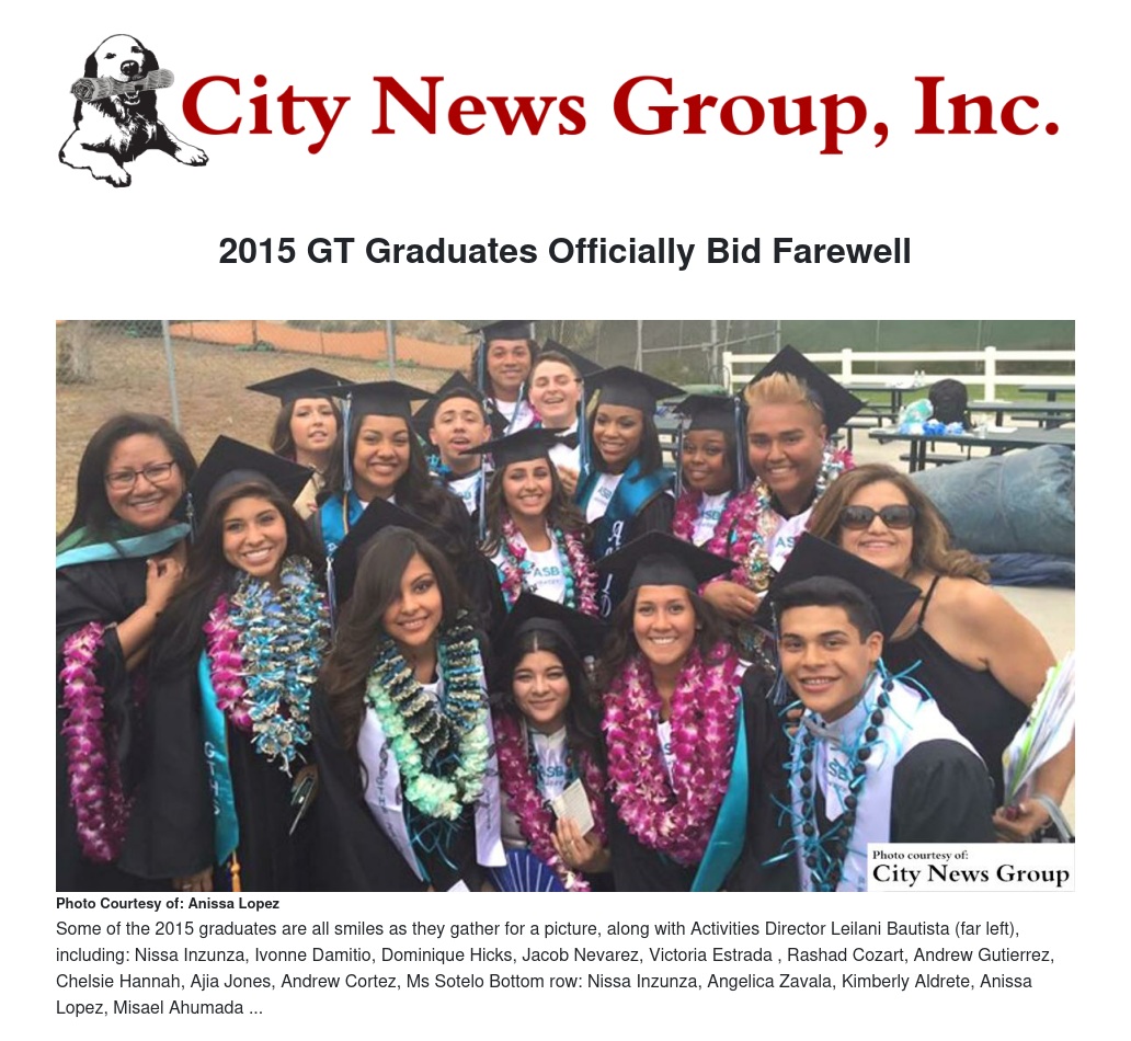 Grand Terrace administration gave congratulations to the class of graduating seniors, saying in a joint statement, "Congratulations and best of wishes to the class of 2015. We're very proud of [you]."