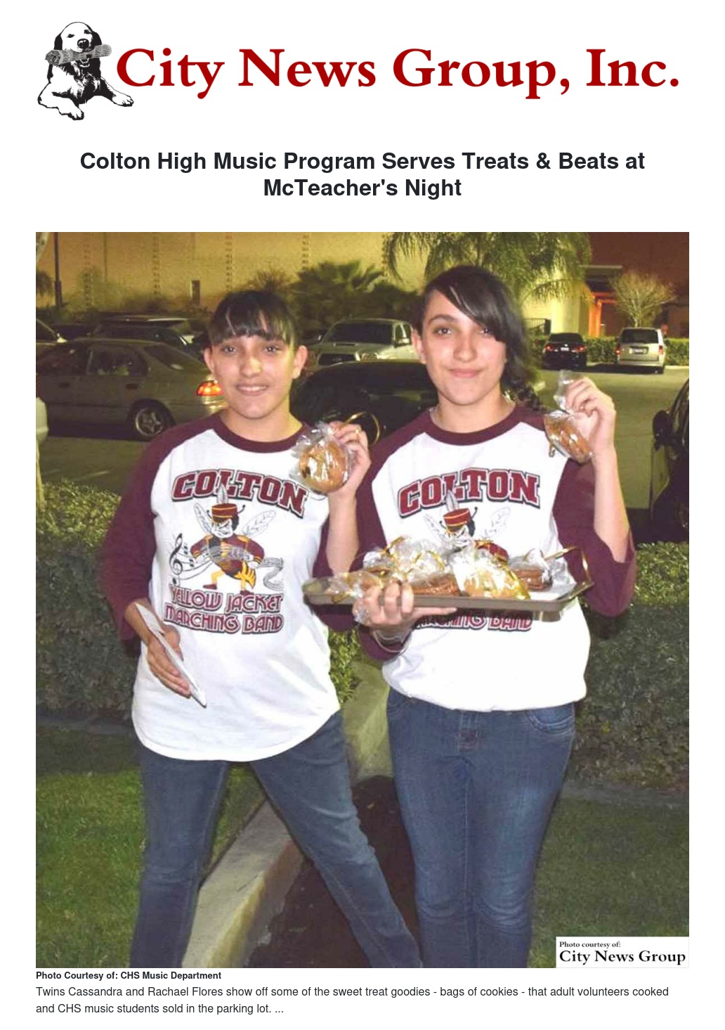 The Colton High School music department's first ever McTeacher's Night was underway last Wednesday, Feb. 19, as 37 music program students - band, choir and winter guard students - and nine adults that included the Music Director Lisa Nicolay, Band Booster Secretary Sheralyn Milton and seven parent volunteers helped serve 247 customers throughout the night, providing them with both delectable eats and musical performances outside the restaurant.