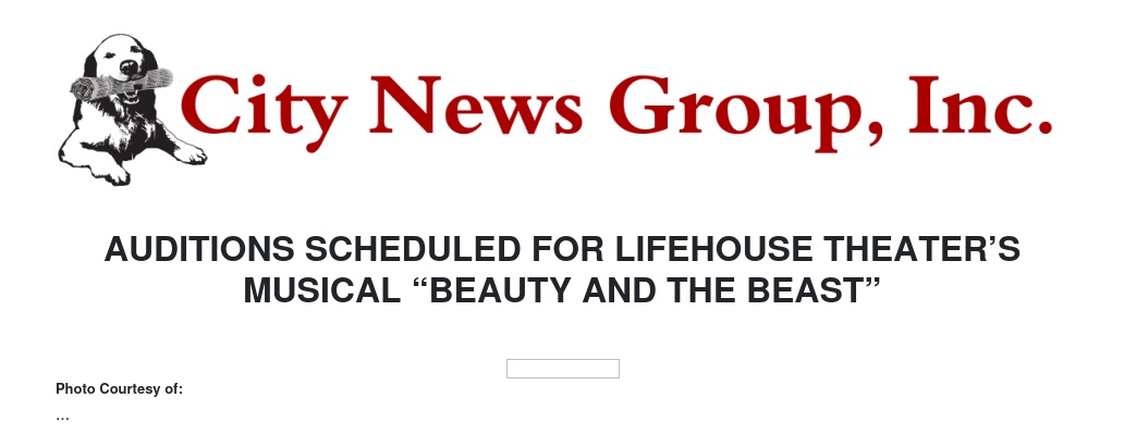 Redlands>>Open auditions for LifeHouse Theater’s “Beauty and the Beast,” directed by Katrina Cavarno, will be Thursday, August 3, 2017 from 6:00 PM to 9:00 PM at LifeHouse Theater, 1135 N. Church Street, Redlands.