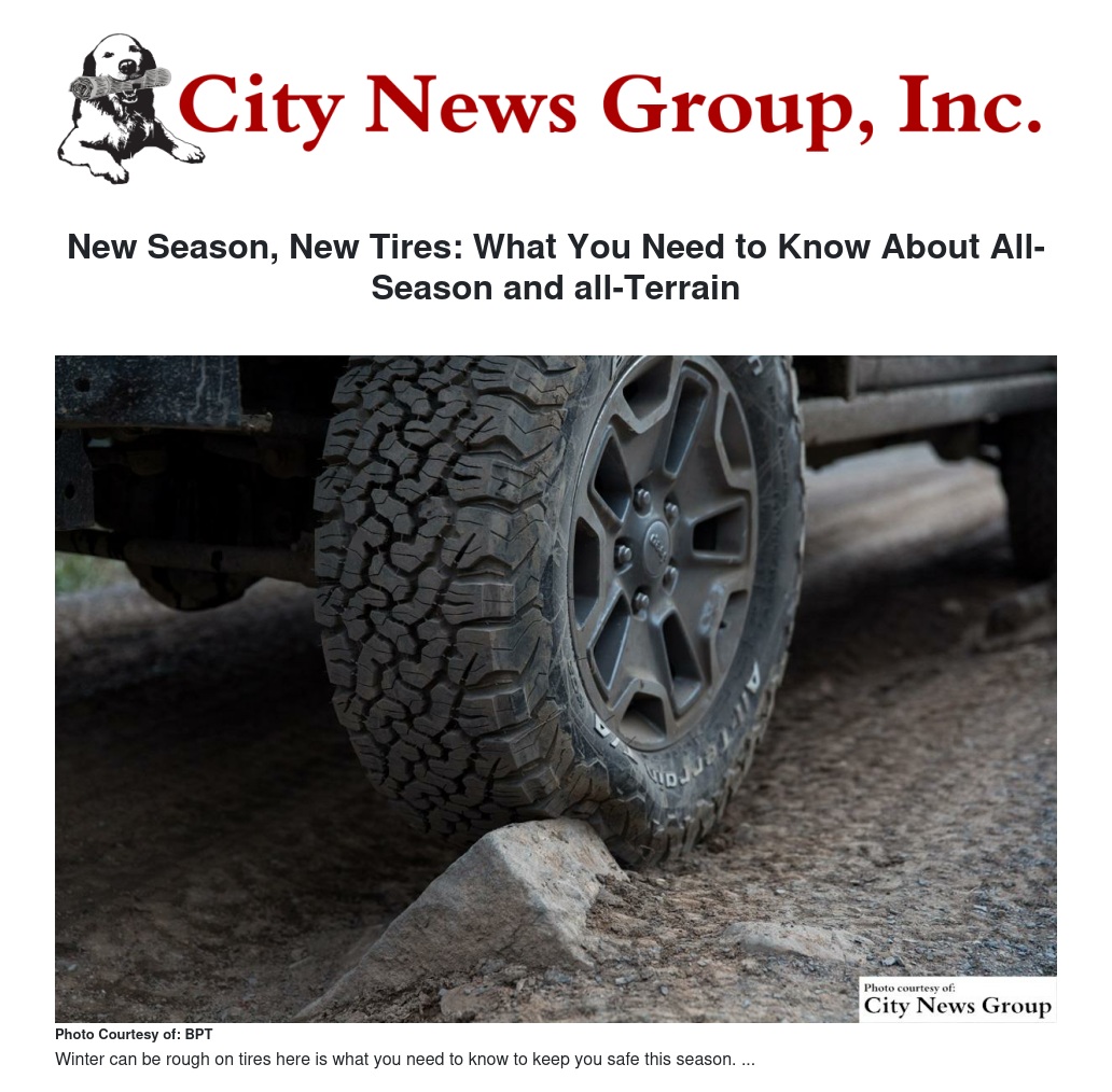 To help you in your decision making, BFGoodrich(R) Tire experts Marcus Wilson and Dan Newsome offer an insider's look at the differences between all-season and all-terrain tires. Use their advice to determine which one matches your pursuits to keep you enjoying your vehicle all season long.
