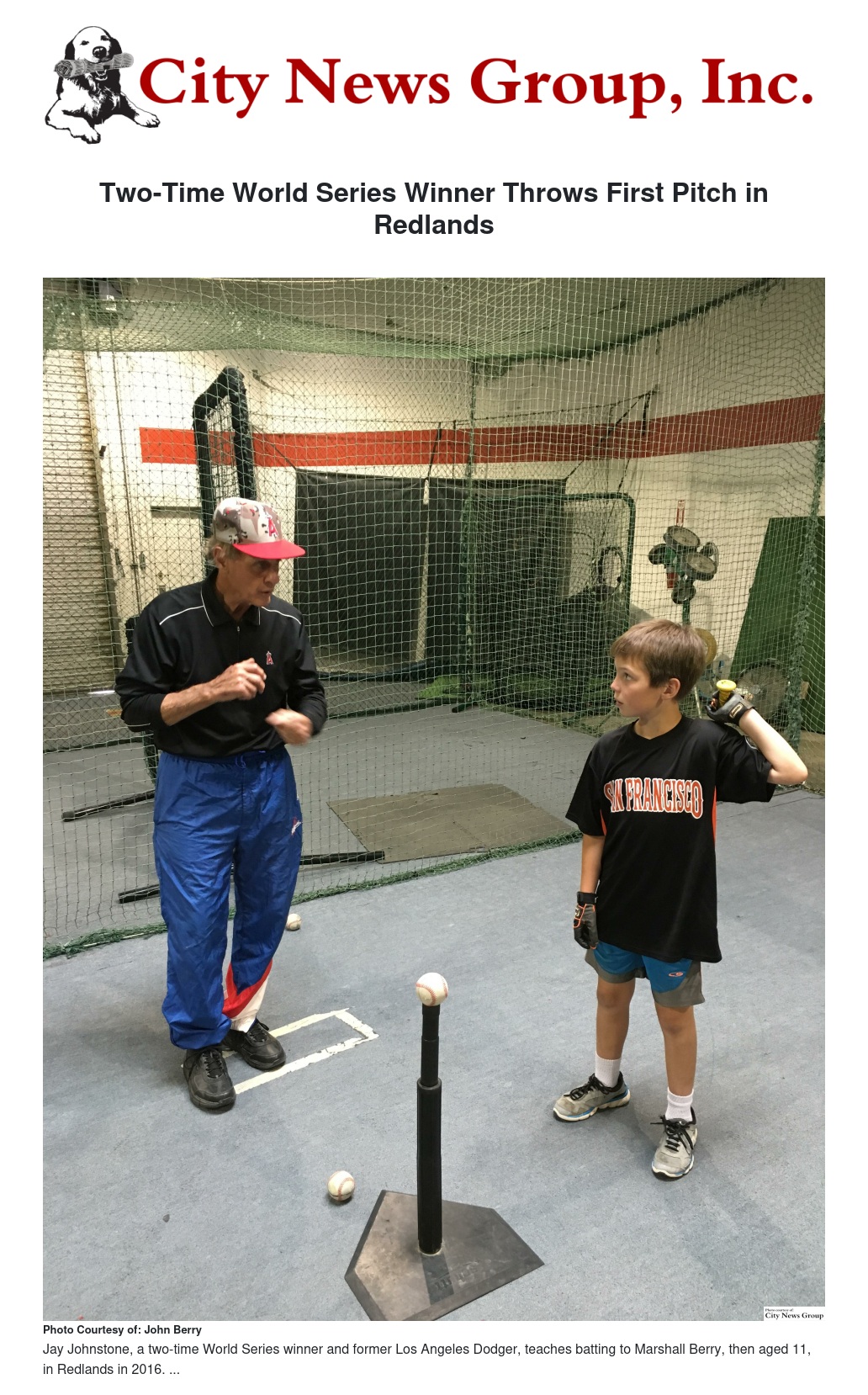 In addition, Johnstone, who lives in Pasadena, drove to Redlands later in 2016 to give a private batting lesson to Berry’s baseball team of 11-and 12-year-old boys.