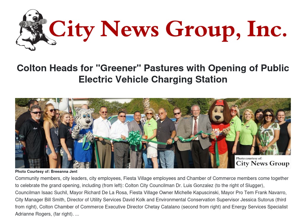 Colton Heads for "Greener" Pastures with Opening of Public Electric Vehicle Charging Station