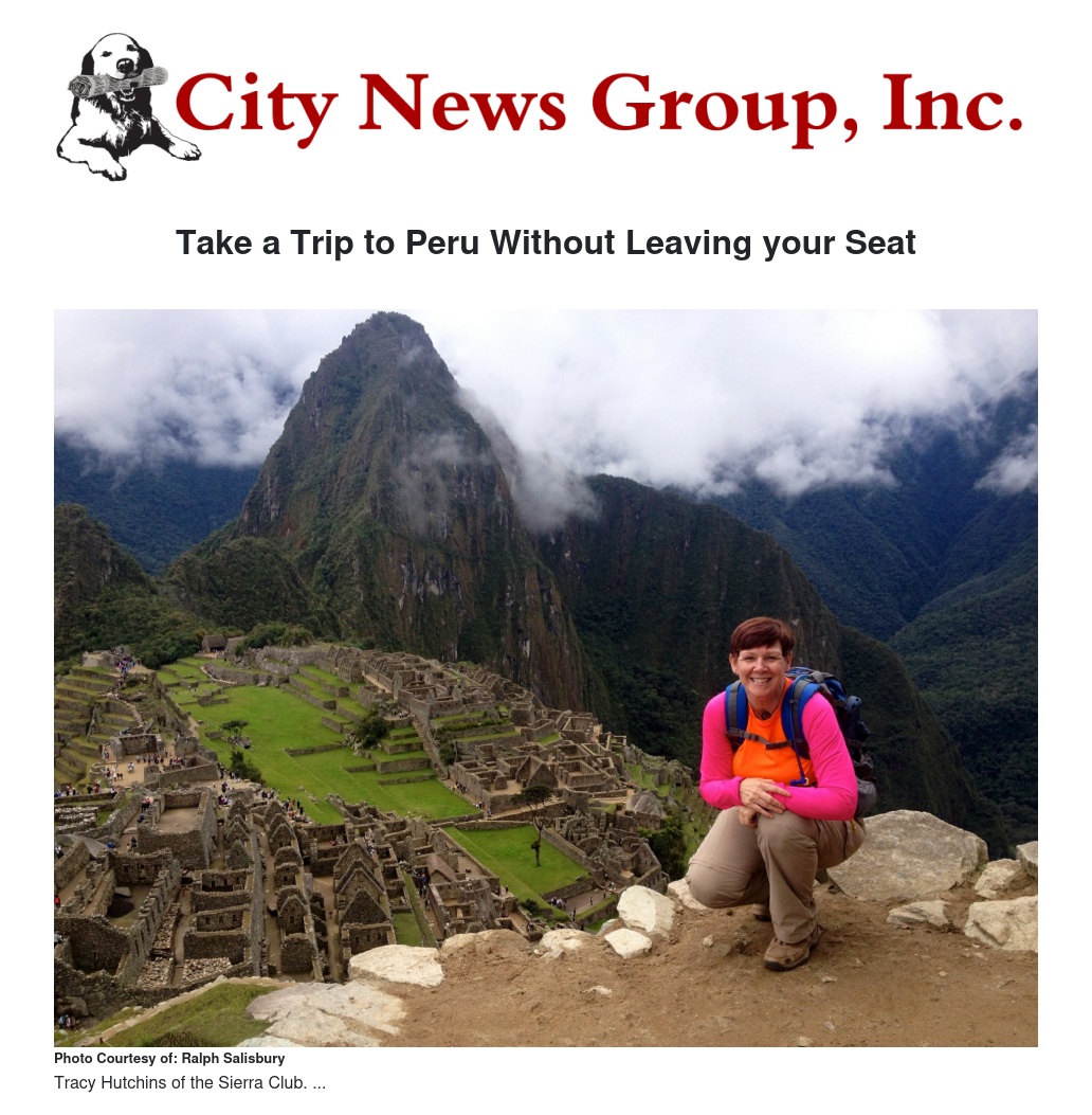 Sierra Club member Tracy Hutchinson will give a talk and slide show of her “Adventure in Peru”.