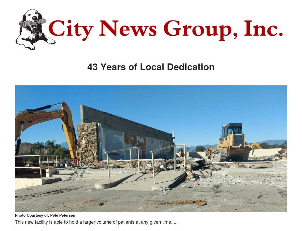 After nearly two years of searching for a suitable property in Grand Terrace, the doctors were near ready to throw in their towels. The possibility of even closing the clinic’s doors was being considered. However, Drs McDuffee and Hardesty did not give up. Their passion and determination grew even stronger. With their determination and with help from the City of Grand Terrace they were able to locate a piece of undeveloped land that would soon be the home of the new Animal Emergency Clinic. It only happened by pure chance that this new location would be located less than a mile away from where the hospital was located at that time.
