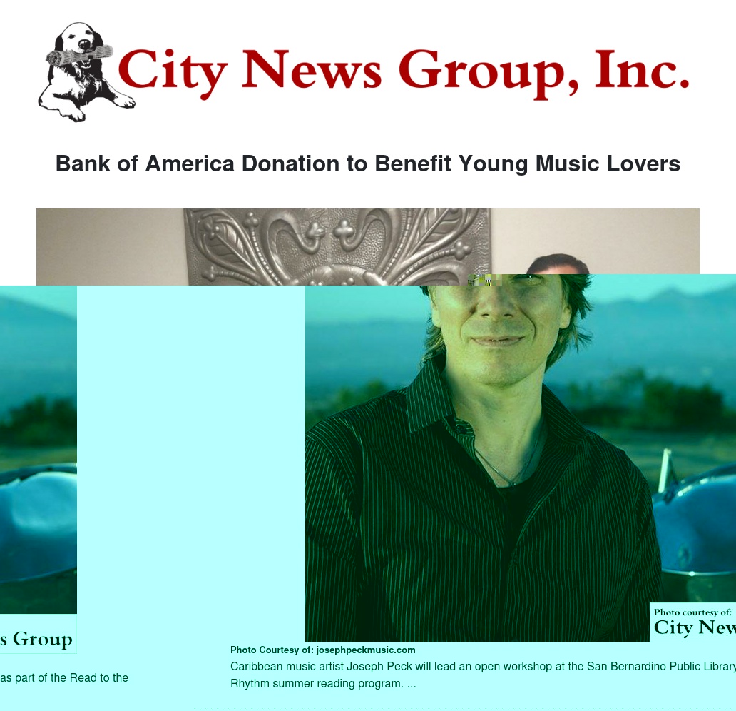 As part of the Summer Reading Game theme, Read to the Rhythm, the San Bernardino Public Library will host Joseph Peck and his music of the Caribbean. Peck will provide a general overview of the steelpan (steel drum) and its origin. He will perform on the steel drum and then attendees will have the opportunity to play a percussion instrument in a drum circle.