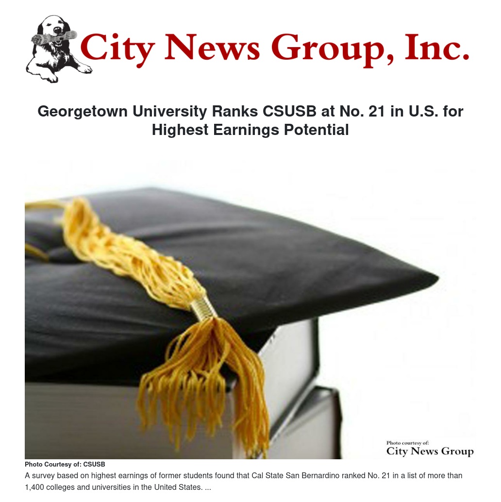 Georgetown University Ranks CSUSB at No. 21 in U.S. for Highest Earnings Potential