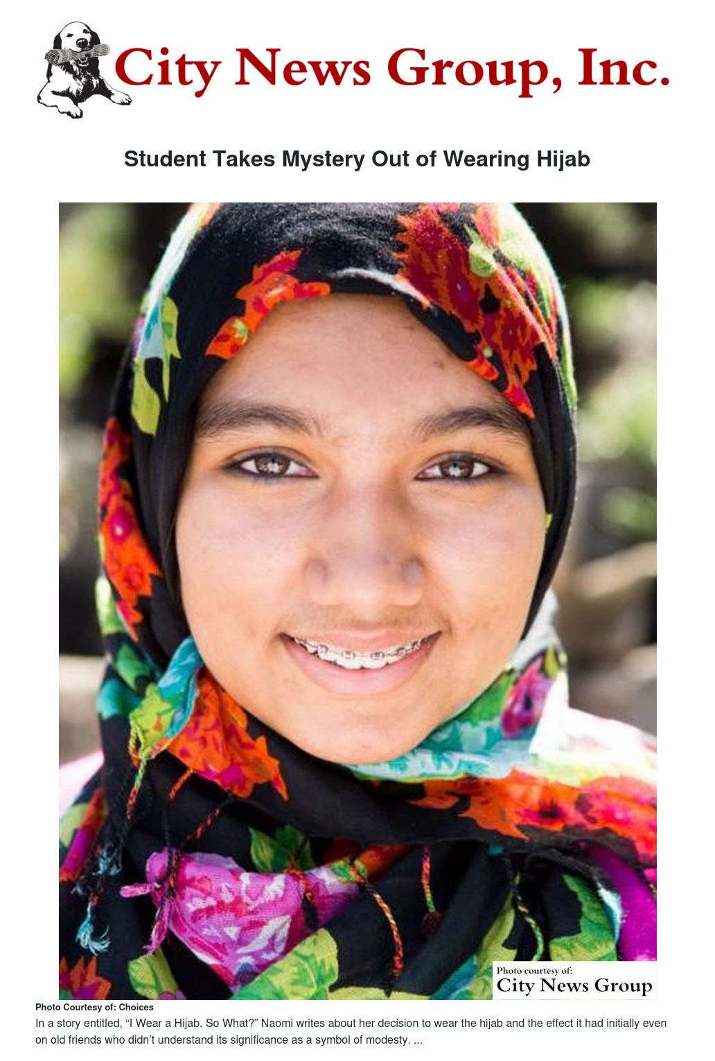 In a story entitled, “I Wear a Hijab. So What?” Naomi writes about her decision to wear the hijab and the effect it had initially even on old friends who didn’t understand its significance as a symbol of modesty.
