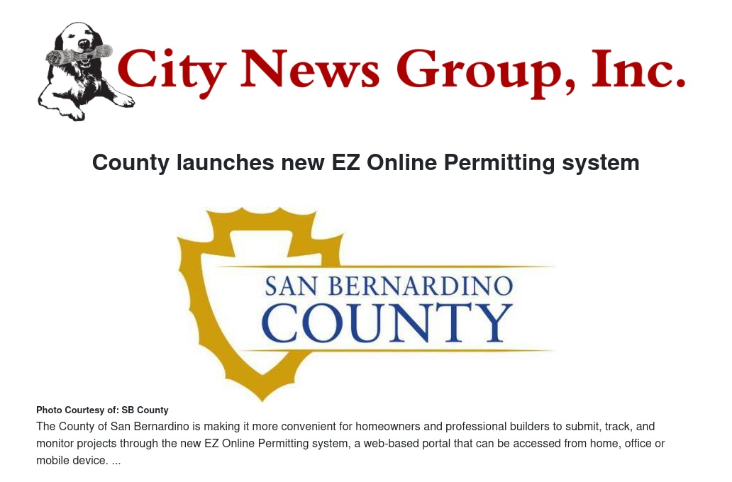 The County of San Bernardino is making it more convenient for homeowners and professional builders to submit, track, and monitor projects through the new EZ Online Permitting system, a web-based portal that can be accessed from home, office or mobile device.