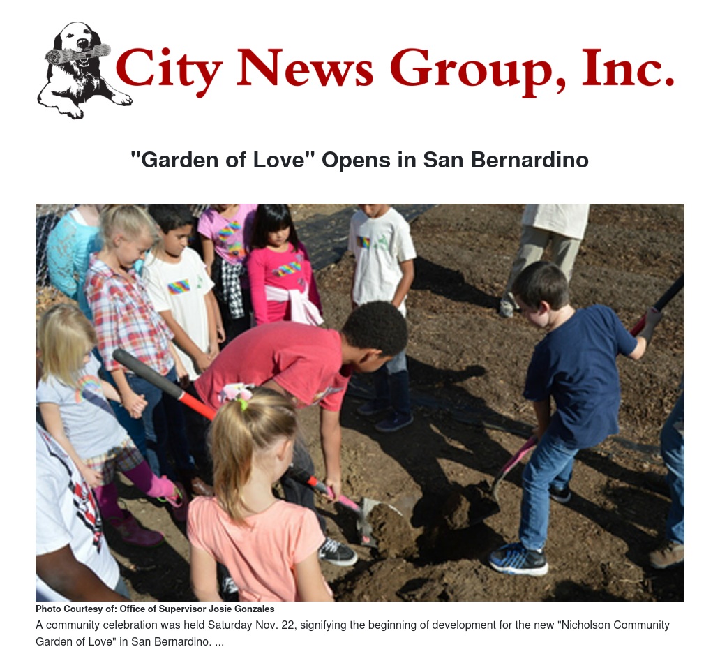 The garden will be located next to the Nicholson Community Fruit Park in Nicholson Park at 2750 W. Second St. in San Bernardino, on the corner of Meridian Avenue and Second Street.