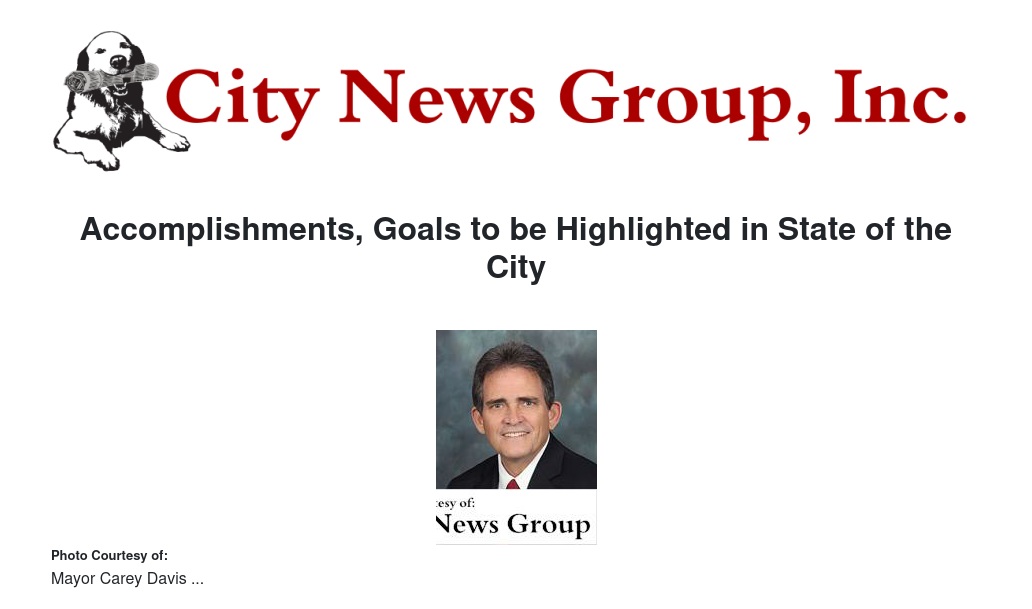 Accomplishments, Goals to be Highlighted in State of the City