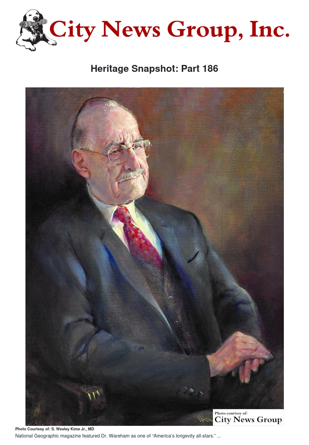 In Nov. 2005, National Geographic magazine featured Dr. Wareham as one of “America’s longevity all-stars.”