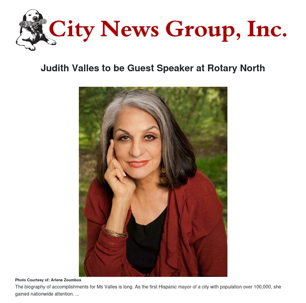 San Bernardino Rotary North has announced that they will feature Judith Valles as guest speaker at their luncheon meeting held on Thursday, November 2 at Arrowhead Country Club at noon.