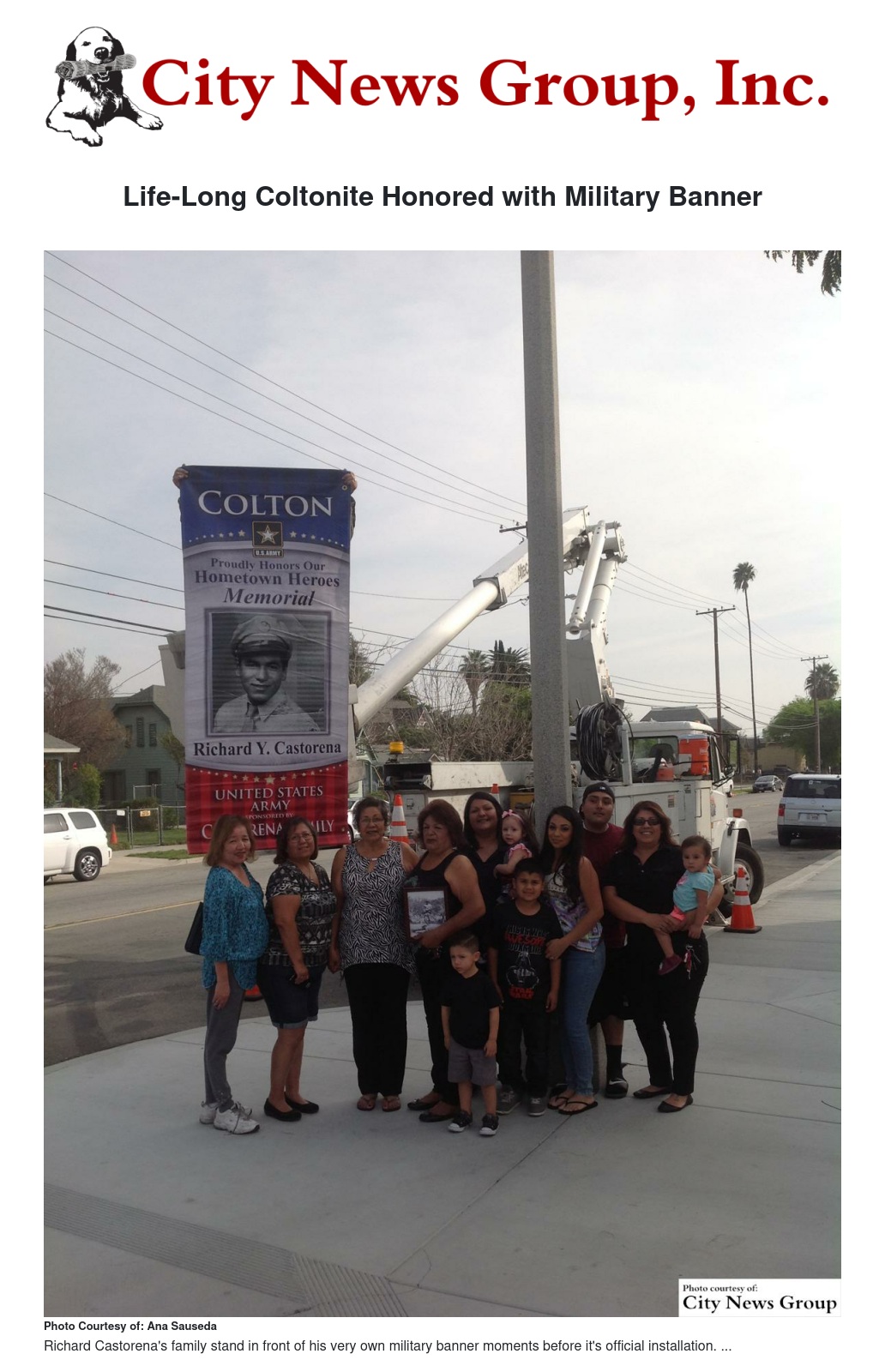 Life-long Coltonite Richard Y. Castorena was honored for his devoted service to our country with a military banner installation ceremony hosted by his family, friends, and his hometown of Colton.