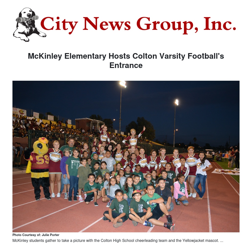 McKinley Elementary Hosts Colton Varsity Football's Entrance