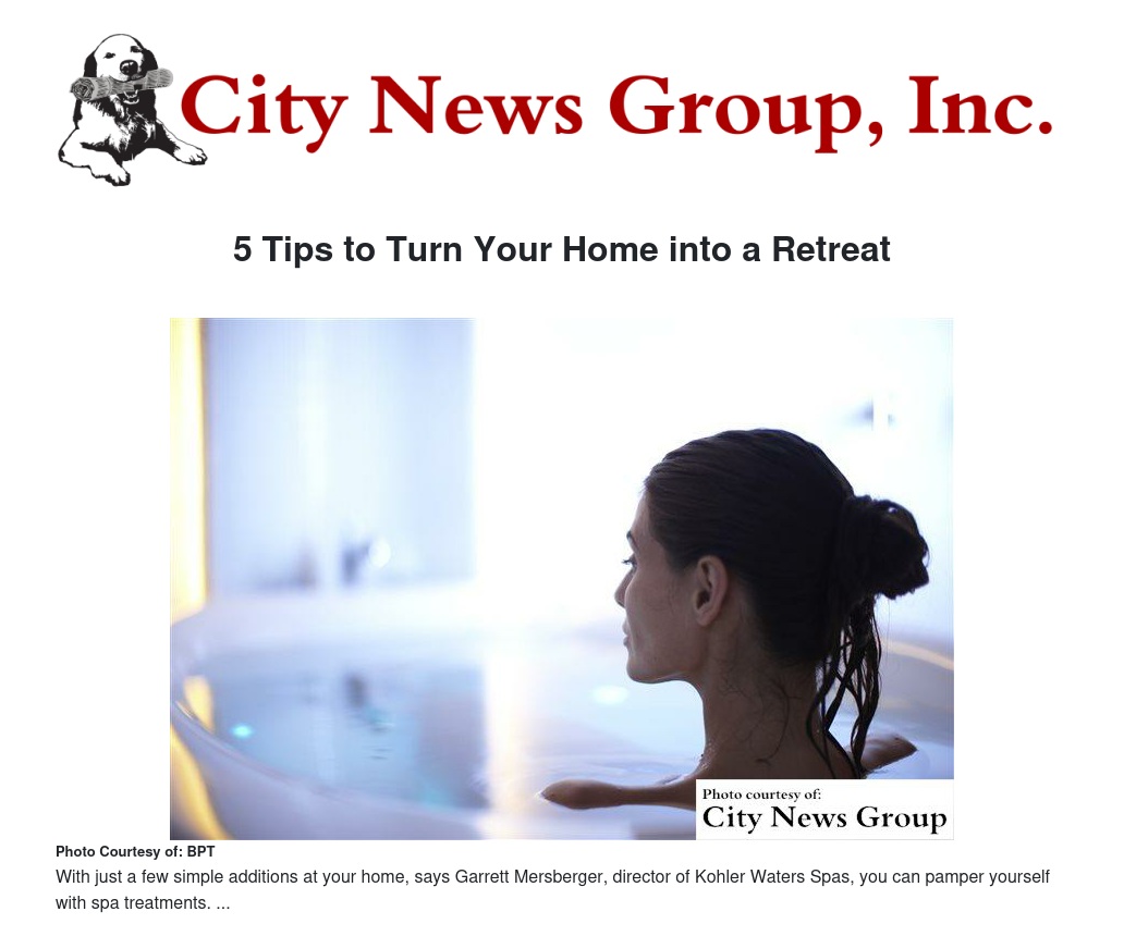 Destination Kohler is located in Kohler, Wisconsin, and recently named one of the top 15 wellness resorts by Conde Nast Traveler. A few simple additions to your home, says Garrett Mersberger, director of Kohler Waters Spas, can greatly increase the relaxation factor during your down time.