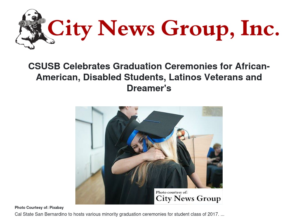 SAN BERNARDINO>> Though Cal State San Bernardino’s official commencement exercises will be celebrated on June 15 for the Palm Desert Campus at the Agua Caliente Casino Resort Spa in Rancho Mirage and June 17 at Citizen’s Business Bank Arena in Ontario, the university will also hold graduation celebrations for various groups on campus.