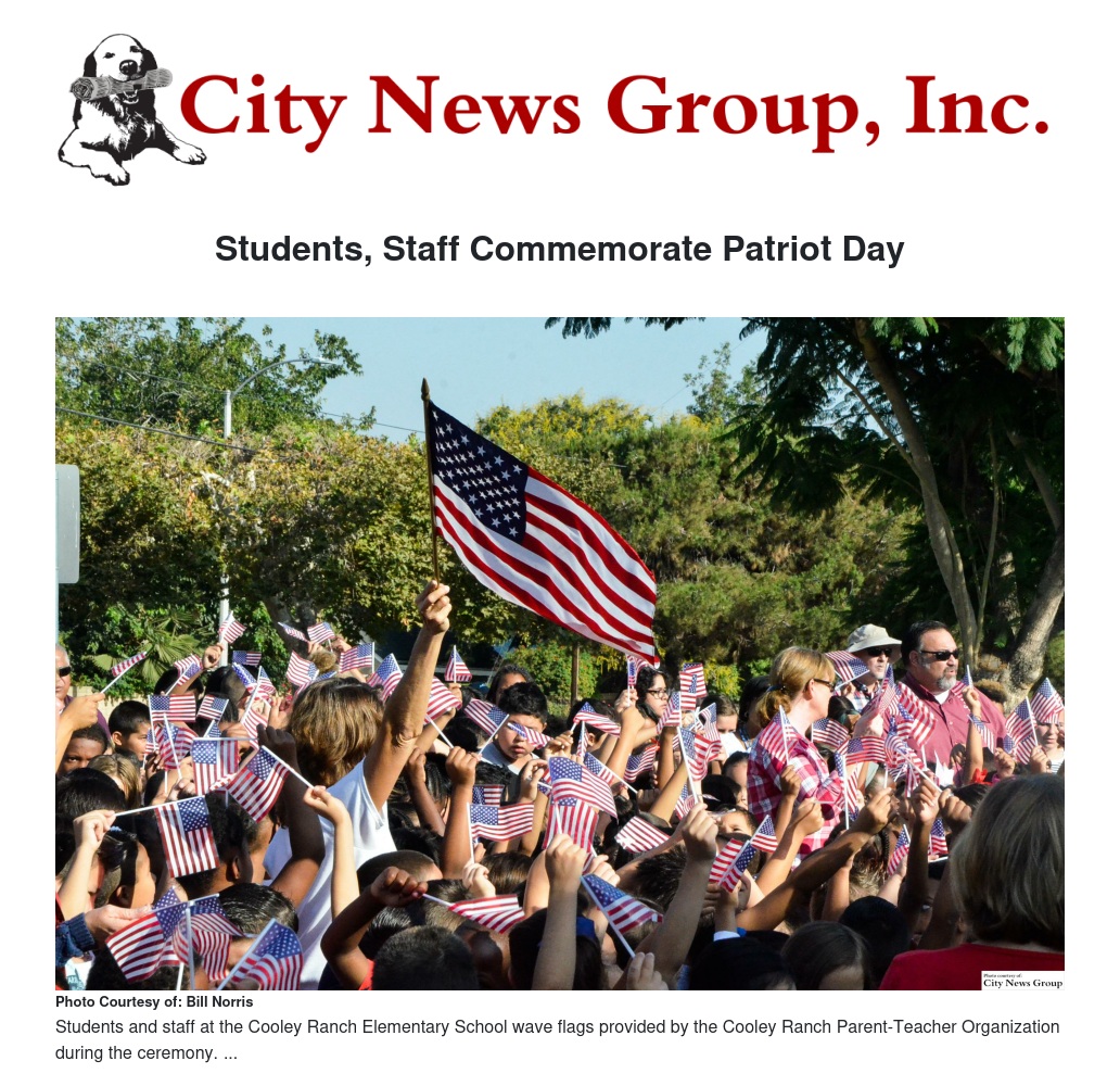 Held Sept. 9, Cooley Ranch Elementary’s Patriot Day ceremony was presented by the school’s K-Kids club, a student chapter of the Kiwanis Club and the remembrance has become an annual event.