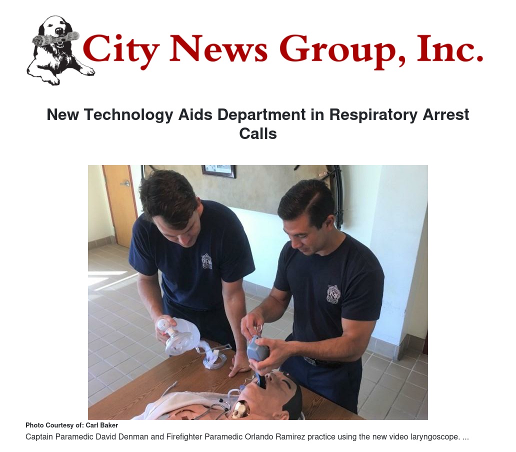 The Redlands Fire Department has deployed eight new laryngoscopes with fiber optic cameras, allowing them to deliver state of the art, cutting edge service to the Redlands community.