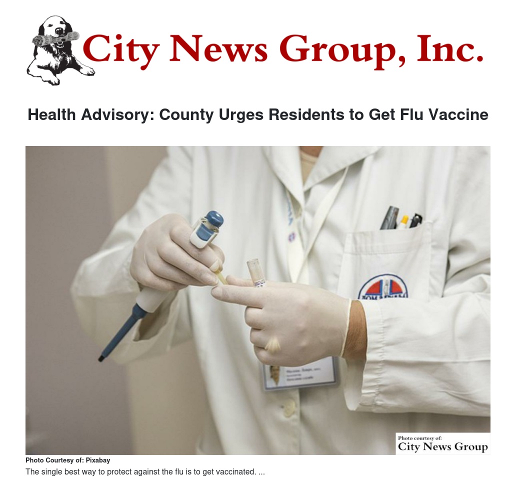 Health Advisory: County Urges Residents to Get Flu Vaccine