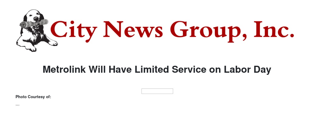 In observance of Labor Day, no trains will operate on any Metrolink line Monday, Sept. 7, with the exception of limited bus service on the Antelope Valley Line.