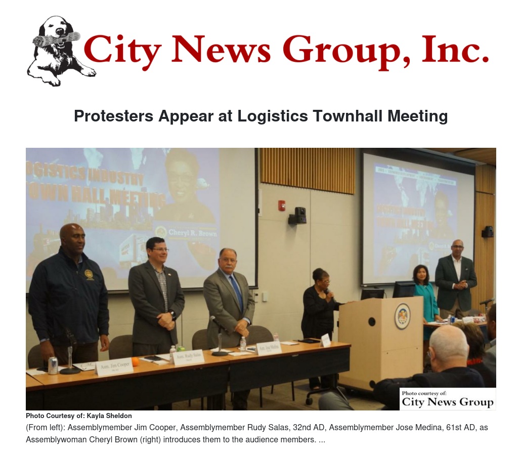 Assemblywoman Cheryl Brown of the 47th District hosted a Logistics Town Hall Meeting on Friday, March 4, in the Business Conference Center at San Bernardino Valley College where a large group of protesters appeared at the event.