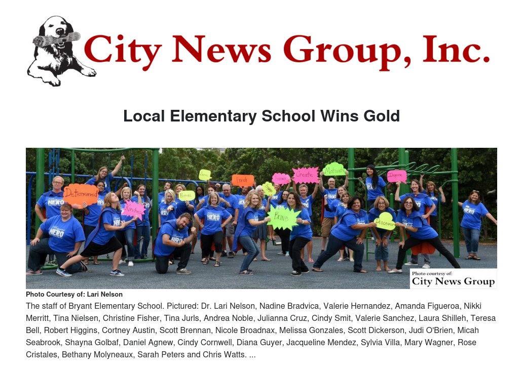 “This award is a great honor and the entire staff at Bryant is to be commended,” said RUSD superintendent, Dr. David Hansen. "Bryant exemplifies, not just the excellence of a Gold Ribbon School, but of the high standard we have set here at Riverside Unified.”