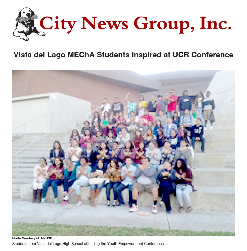 Recently, 40 students from Vista del Lago High School (VDLHS) put a Saturday to good use by attending the UCR Youth Empowerment Conference, sponsored by the UCR MEChA Club and the Chicano Studies Department.