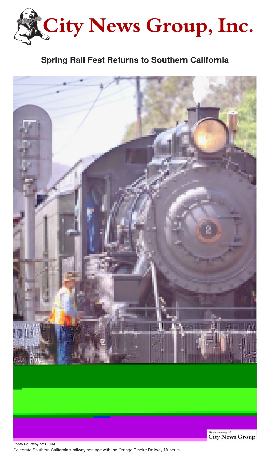 The Spring Rail Festival runs from 9 a.m to 5 p.m. at Orange Empire Railway Museum, 2201 South A Street, Perris.
