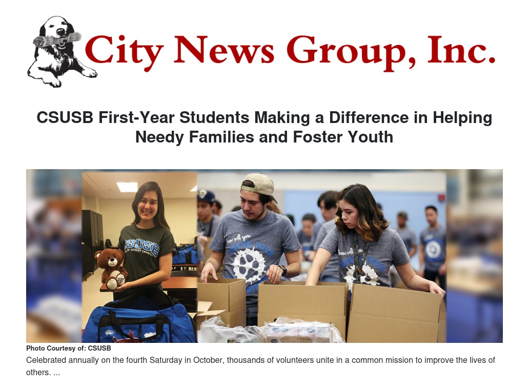 First-year students at Cal State San Bernardino continued a tradition of volunteering that will benefit needy families this Thanksgiving in San Bernardino County, as well as foster youth in the Coachella Valley, as part of national Make A Difference Day.
