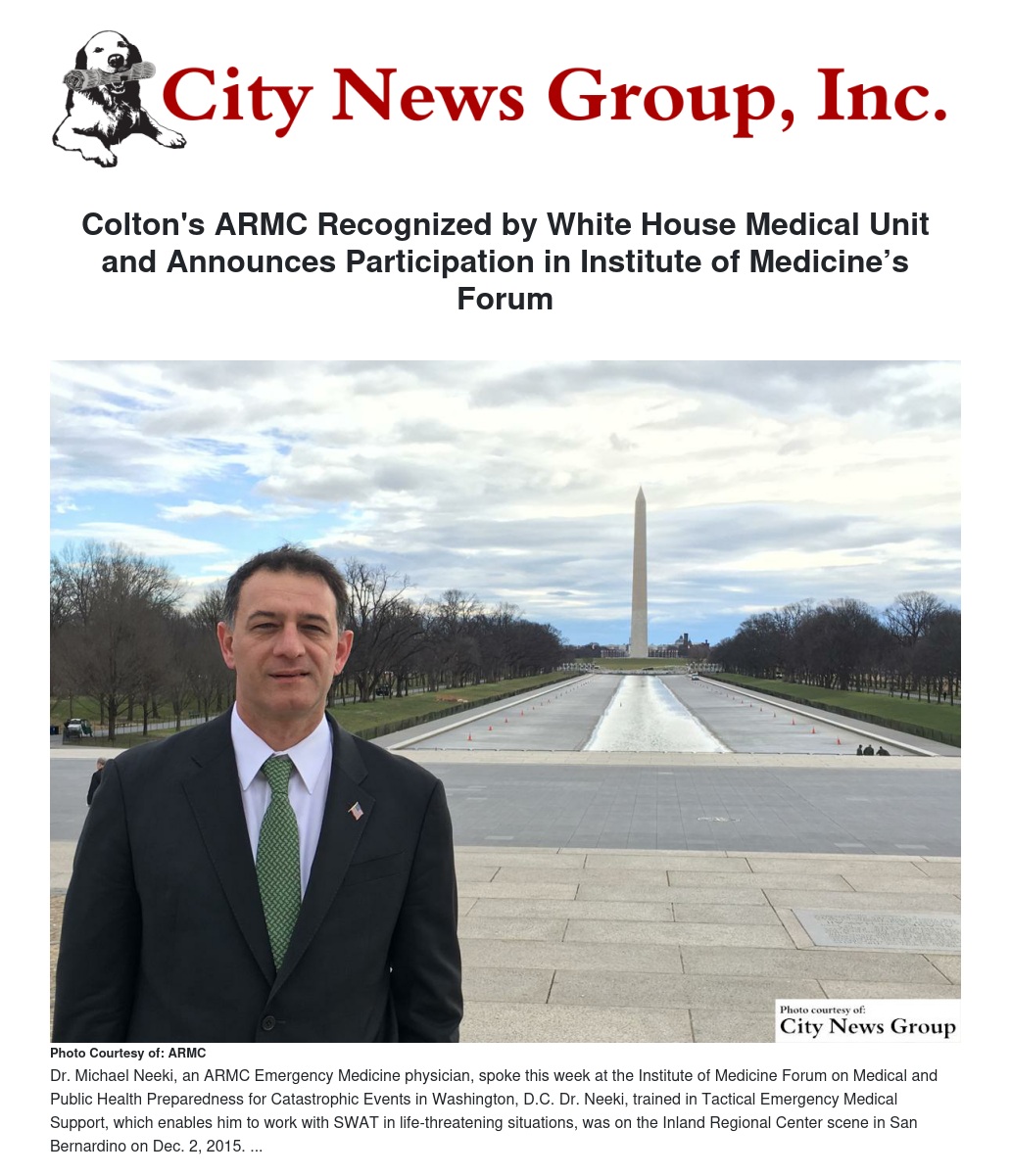 Colton's ARMC Recognized by White House Medical Unit and Announces Participation in Institute of Medicine’s Forum