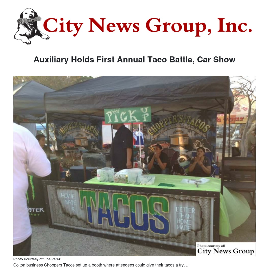 COLTON>> On Aug. 29, the Colton Veterans of Foreign Wars Post 6476 Auxiliary held their first Annual Taco Battle Car Show and Concert at the auxiliary.