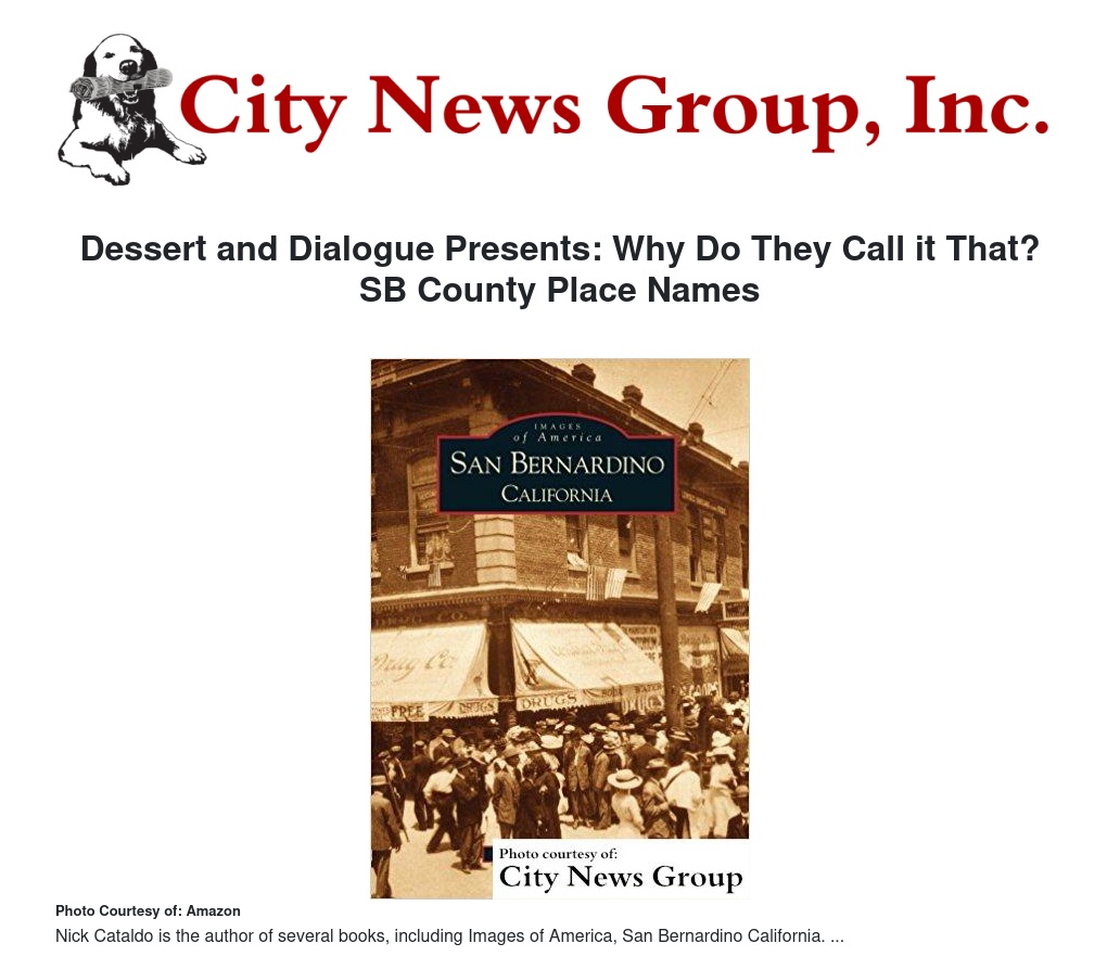 Nick Cataldo is the author of several books, including Images of America, San Bernardino California and Hertiage Tales: earps of San Bernardino County.