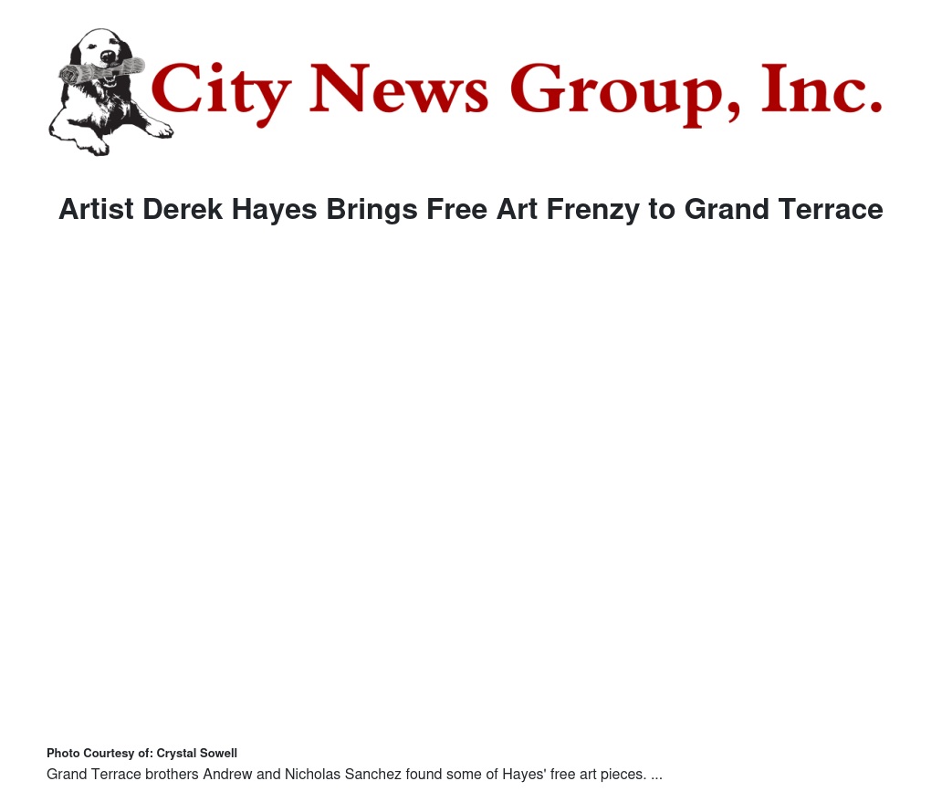 And other local artists have joined in on the fun, posting their Facebook hints and leaving free artwork throughout Grand Terrace. Brittney Berliner is one of those artists who said, “The first day I saw Derek’s post, I immediately wanted to be a part of it.”