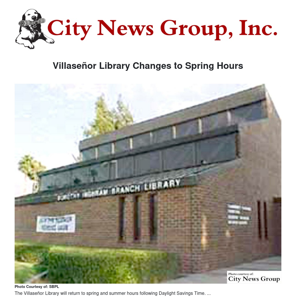 The Villaseñor Branch of the San Bernardino Public Library will return to its spring hours on Mondays and Tuesdays starting Monday, March 9.