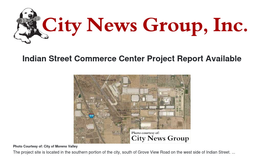MORENO VALLEY>> The Final Environmental Impact Report for the proposed Indian Street Commerce Center is complete and available for public review.