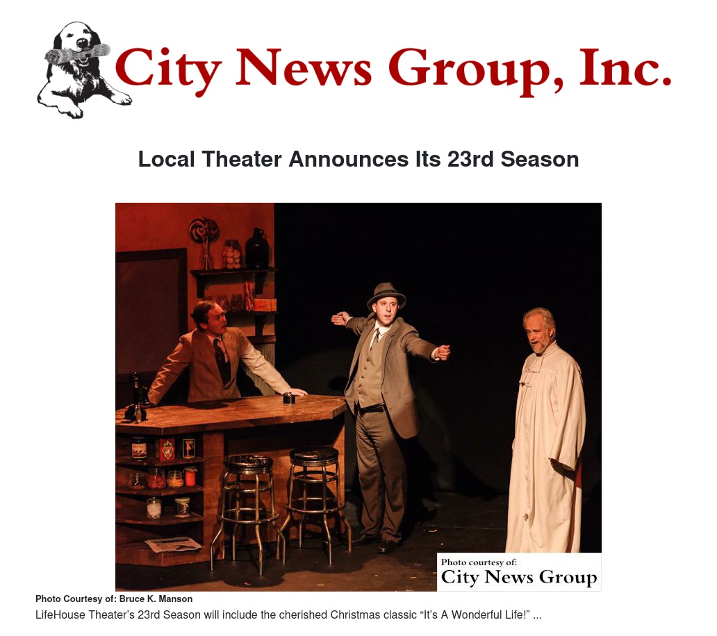 LifeHouse celebrates the Christmas season with the return of the award-winning original musical, “It’s A Wonderful Life!” which will run Dec. 3 through 23. The unforgettable folks of Bedford Falls come to life on stage in this toe-tapping tribute to a beloved American tale. The true spirit of Christmas touches George Bailey and all who witness his amazing encounter with a wayward angel.