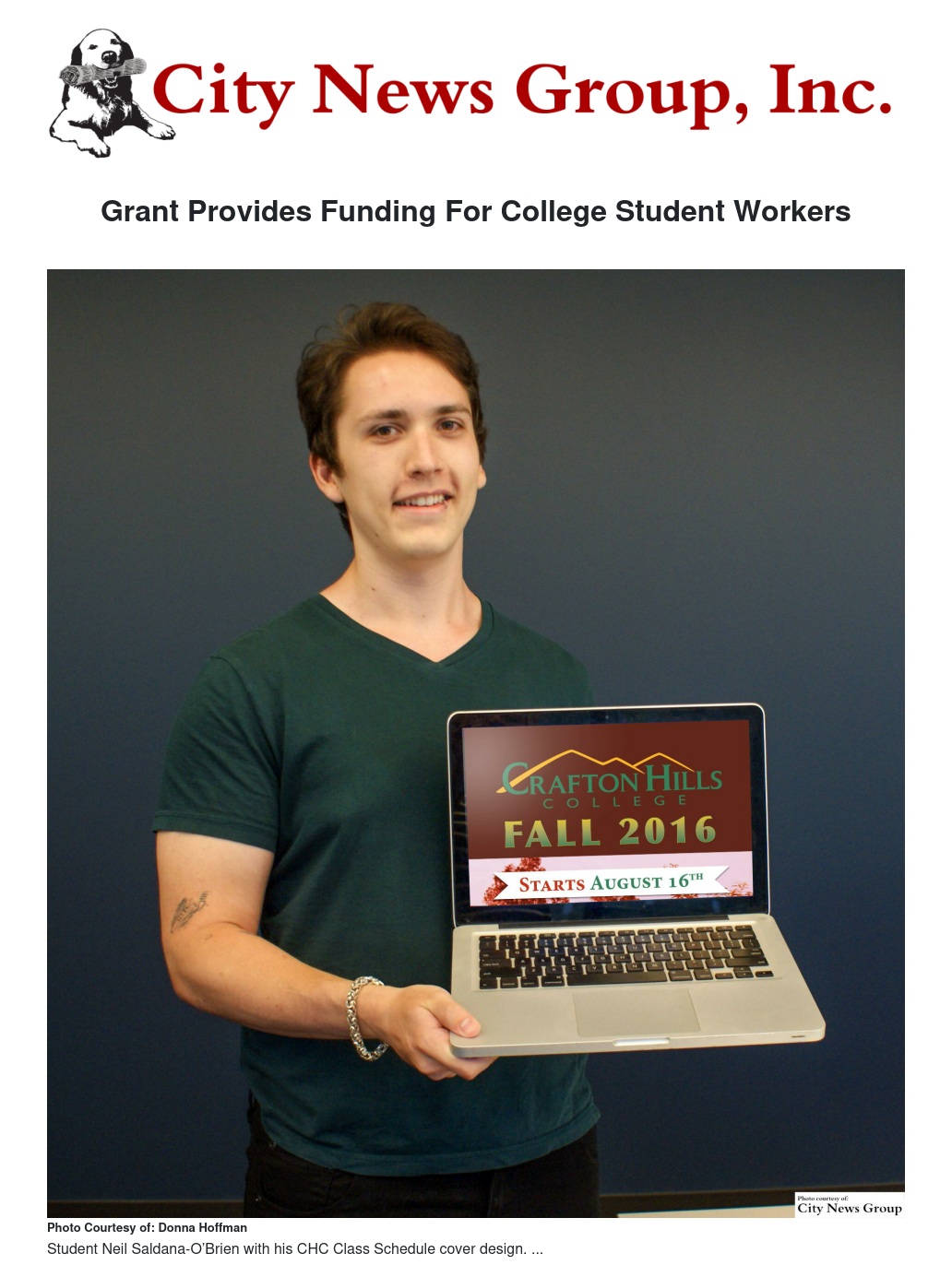 With $20,000 earmarked for scholarships, the remainder of the grant will be used to fund student employment on campus. Having gainful employment boosts self-esteem and allows students like Neil Saldana-O'Brien to focus on their studies, leading to higher success rates. Saldana-O'Brien, a graphic designer in the marketing and public relations department, said his job has helped him with everything from time management to enhancing his writing skills.