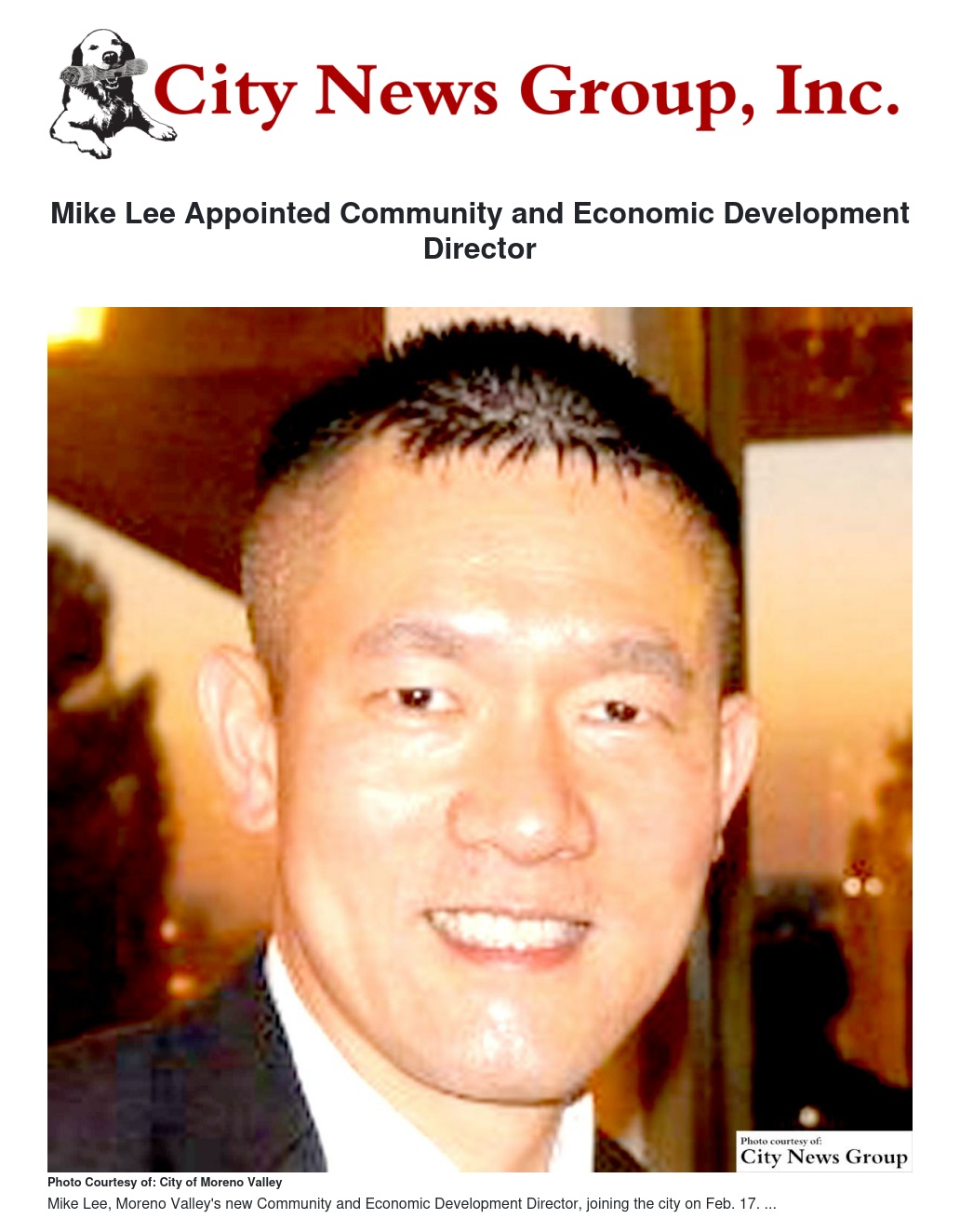 Mike Lee has been appointed as Moreno Valley's Community and Economic Development Director. Lee officially joined the city's executive team on Feb. 17.