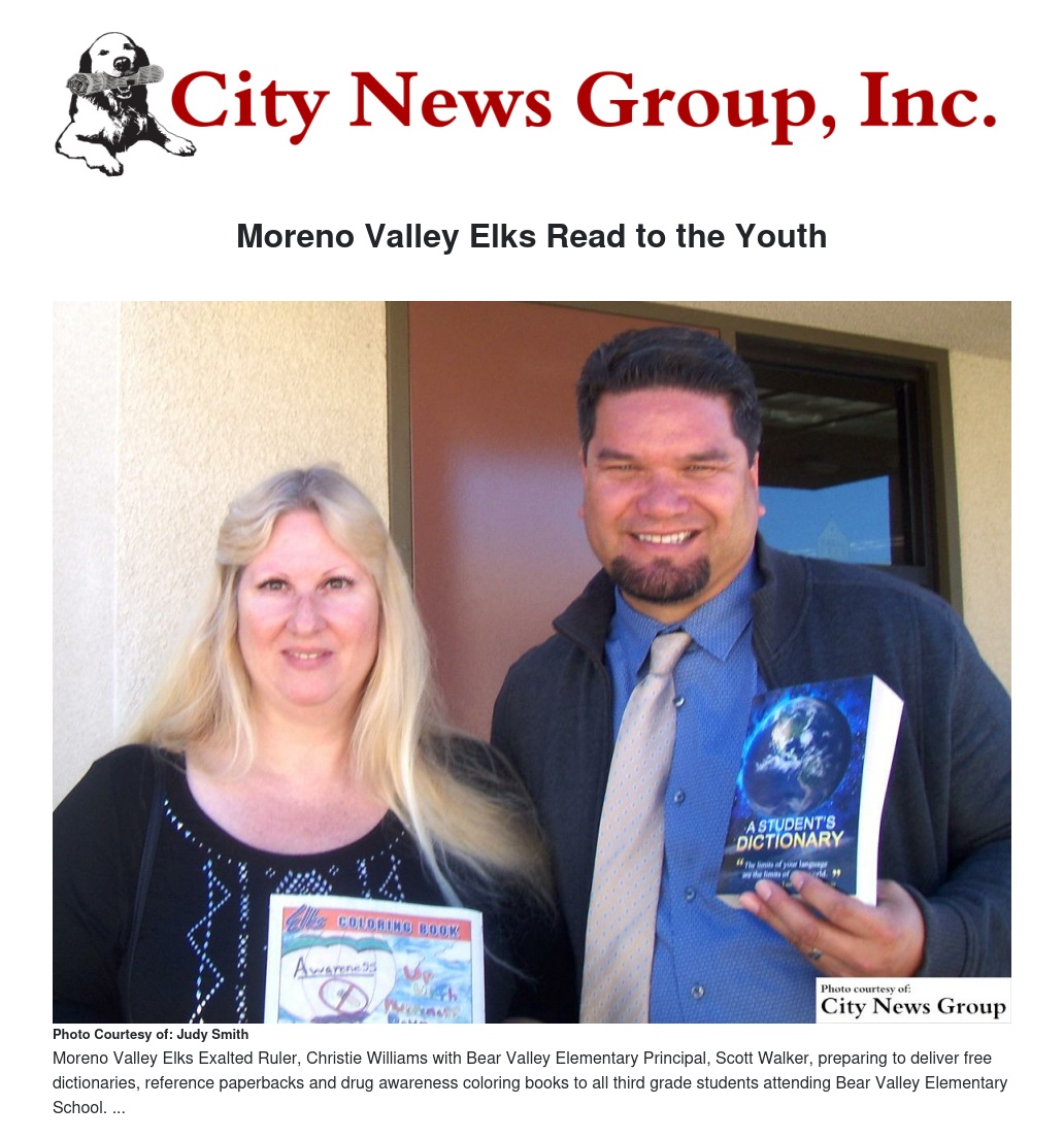 The Elks dictionary Program is just one of many youth programs supported by Moreno Valley Elks Lodge #2697.